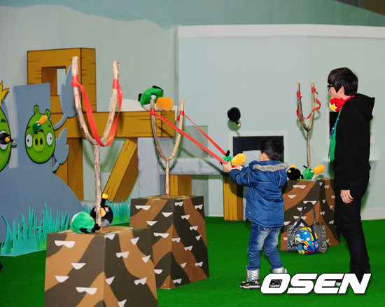 ‘앵그리버드 체험전’은 우리나라에서 처음으로 기획 됐고 새해 2월 13일까지 진행 된다. 본격 오픈에 앞서 스태프가 어린이 관람객에게 놀이 방식을 설명해 주고 있다.