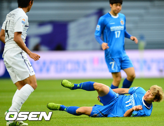 전반 울산 이근호가 반칙을 당한 후 고통스러워 하고 있다.