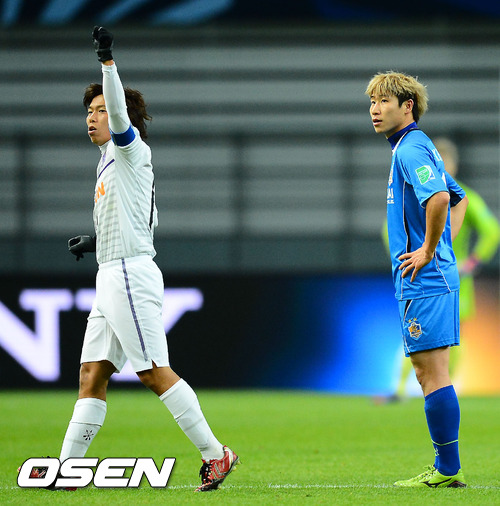 후반 사토 히사토가 역전골에 성공한 후 기뻐할때 울산 이근호가 아쉬워하고 있다.