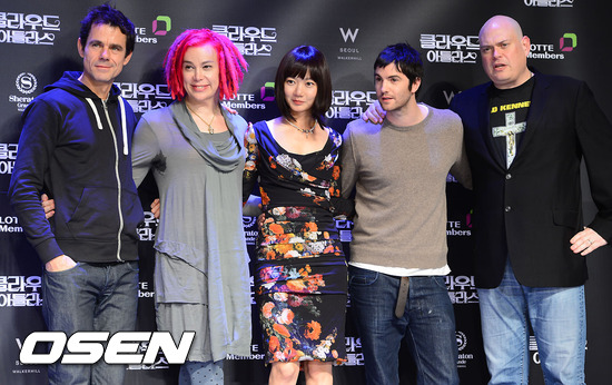 13일 오후 서울 쉐라톤 워커힐 호텔에서 열린 영화 '클라우드 아틀라스' 내한 기자회견에서 감독들과 출연배우들이 포즈를 취하고 있다