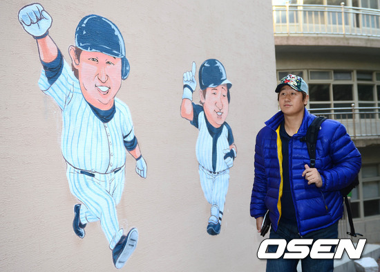 13일 오후 부산 서구 경남고등학교에 도착한 이대호가 훈련을 위해 야구장으로 향하고 있다.