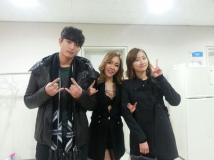 임정희는 13일 오후 자신의 트위터에 "멋쟁이 진운이와 상큼걸 예은이가 응원해주러 왔네요. 뮤지컬 '락오브에이지'"라는 글과 함께 한 장의 사진을 게재했다.