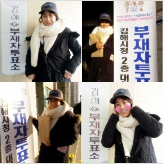 투표 직후 자신의 미니홈피에 “김해에서 ‘전국노래자랑’ 촬영 중. 오늘 먼저 스태프들과 함께 부재자투표 하고 인증샷! 혹시 몰라 두 손은 아무것도 하지 않았삼! 각자 자기 자리에서 잘 하고 있으면 좋은 나라 되지 않을까, 좋은 날 오지 않을까, 싶지만서도 불안한 마음은 감출 길 없네ㅋ 19일 투표하러 갑시다”라는 투표 독려 메시지와 함께 인증샷을 게재해 눈길을 끌었다.