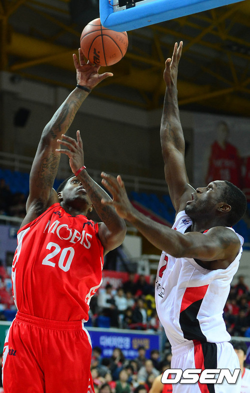 13일 오후 울산 동천체육관에서 열린 'KB 국민카드 2012-2013 프로농구' 울산 모비스와 안양 KGC 인삼공사의 경기 1쿼터 모비스 라틀리프가 골밑슛을 시도하고 있다.