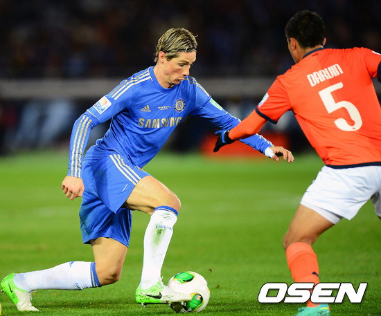 전반 첼시의 페르난도 토레스가 돌파를 시도하고 있다.