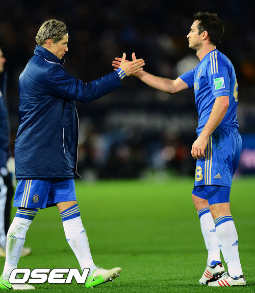 경기를 마치고 첼시의 토레스와 람파드가 하이파이브를 하고 있다. / rumi@osen.co.kr
