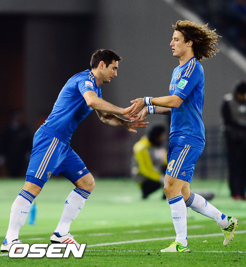 후반 첼시의 다비드 루이스가 프랭크 램파드와 교체되며 하이파이브를 하고 있다. / rumi@osen.co.kr