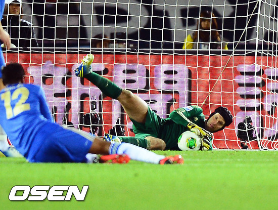 후반 첼시의 페트로 체흐가 몸을 날리며 슛을 막아내고 있다. / rumi@osen.co.kr
