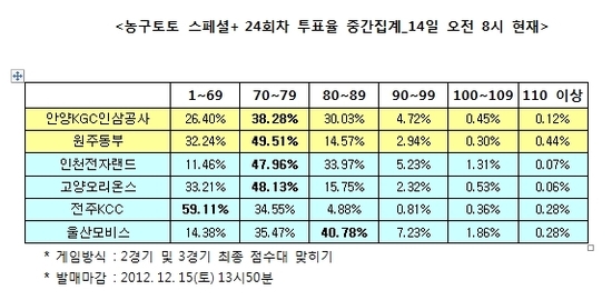 국내 프로농구(KBL) 3경기 대상 농구토토 스페셜+ 24회차 투표율 중간집계 결과