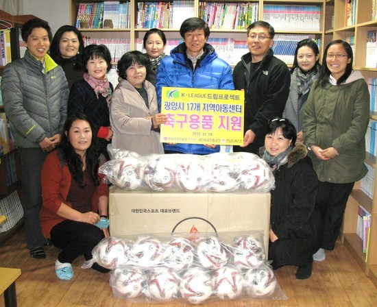 전남 드래곤즈가 지역아동들과 함께 꿈과 희망을 나누기 위해 14일 광양지역 17개 지역아동센터에 스포츠용품(축구공)을 지원했다.