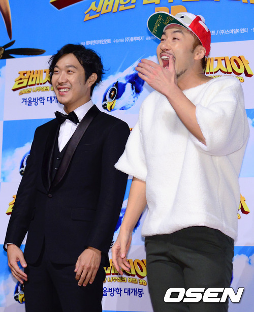 14일 오후 서울 건대 롯데시네마에서 열린 '잠베지아:신비한 나무섬의 비밀' 언론배급시사회에서 하하와 노홍철이 미소짓고 있다.