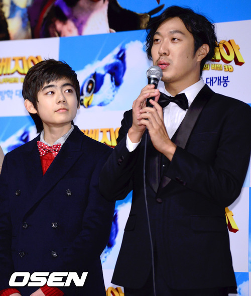 14일 오후 서울 건대 롯데시네마에서 열린 '잠베지아:신비한 나무섬의 비밀' 언론배급시사회에서 김지훈이 하하를 바라보고 있다.