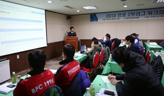 한국프로축구연맹은 지난 12일부터 13일까지 양일간 부산 유스호스텔 아르피나에서 고양 Hi FC, 안양시민프로축구단, 충북 충주 험멜 FC, 부천 FC1995, 수원 FC(광주 FC, 상무, 경찰축구단 제외) 등 프로축구 2부리그 신생 5개 구단 사무국 임직원 24명을 대상으로 프로축구단 운영에 필요한 각종 실무와 관련 제도를 교육하고 실제 사례와 매뉴얼을 공유했다.