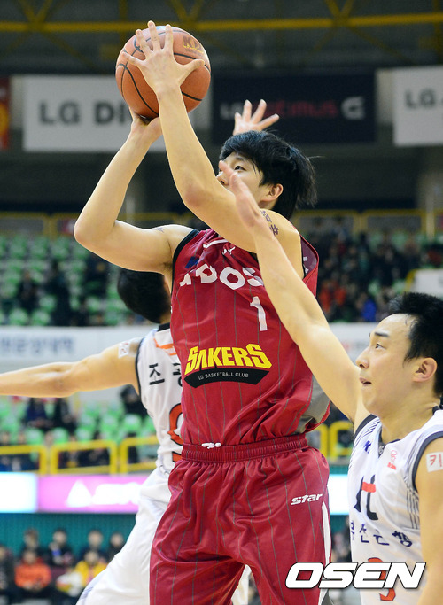 14일 오후 창원 실내체육관에서 열린 'KB 국민카드 2012-2013 프로농구' 창원 LG와 부산 KT의 경기 1쿼터 조상열이 미들슛을 시도하고 있다.