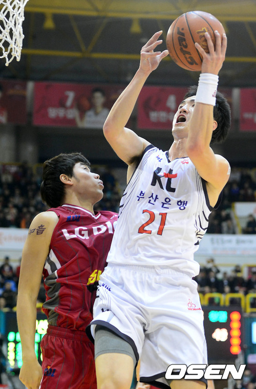 14일 오후 창원 실내체육관에서 열린 'KB 국민카드 2012-2013 프로농구' 창원 LG와 부산 KT의 경기 3쿼터 오용준이 골밑슛을 시도하고 있다.