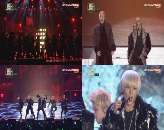 B.A.P는 14일 오후 7시 서울 올림픽공원 체조경기장에서 개최된 MMA에서 올해 발표한 '워리어(Warrior)'를 열창했다. 이들은 검은색 의상을 입고 무대에 올라 칼군무를 선보인 것은 물론 여느 때보다 뜨거운 에너지로 무대를 장악했다.