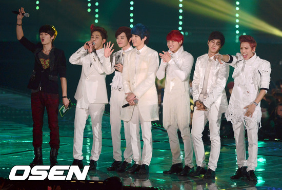 TOP9 상을 받은 인피니트가 소감을 말하고 있다.