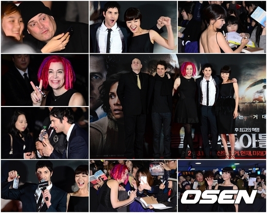 레드 카펫 후 다섯 사람은 무대 위에 올라섰고, 오랜 시간 팬들의 요청에 친절히 답하느라 인사를 할 시간이 짧아졌다. 진행자가 한 사람씩 인사를 부탁하자, 맨 먼저 마이크를 잡은 앤디 워쇼스키 감독이 “초대해줘 너무 고맙다. 김치를 먹고 소주도 마셨는데 맛있었다”라고 말문을 열었다.