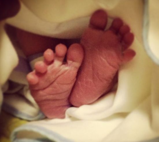 사진 속에는 갓 태어난 아기의 작은 두 발의 모습이 담겨있다. 특히 투컷의 글에서 아들이 태어난 시간이 나와 있어 눈길을 끈다.