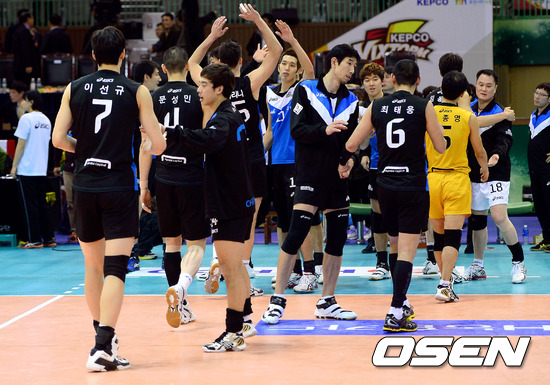 반면 KEPCO는 주로 안젤코가 2세트 중반 이후 급격한 체력 저하로 고전하며 12점에 그쳤다. 안젤코의 이날 공격 성공률은 37.03%에 그쳤다. 1·2세트에 좋은 활약을 선보인 장광균까지 발목 부상으로 코트를 떠난 KEPCO는 3세트 들어 별다른 저항 한 번 해보지 못하고 무너졌다. 6개 팀 중 가장 먼저 10번째 패배를 기록한 KEPCO(승점 2)는 8연패 수렁에 빠졌다.