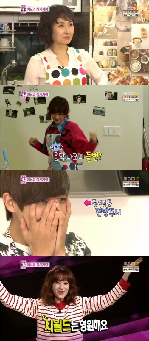 이준의 어머니 손방나 씨는 15일 방송된 MBC 예능 프로그램 ‘우리 결혼했어요 시즌4’(이하 ‘우결’)에서 오연서에게 “며느리 재롱을 보자. 가수 활동했을 때 율동을 보여달라”고 부탁했다.