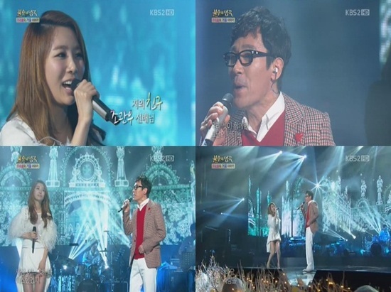 그룹 브라운아이드걸스의 제아와 가수 조관우가 겨울 맞춤용 발라드로 무대를 촉촉이 적셨다.