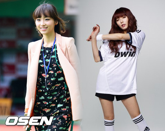 윤태진 KBS N 아나운서와 그룹 포미닛의 리더 현아가 축구게임 팬들을 상대로 매력을 발산한다.
