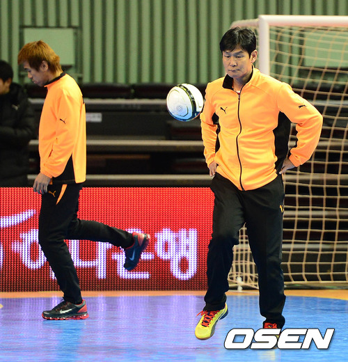 16일 오후 서울 잠실실내체육관에서 열린 '하나은행과 함께하는 Share the Dream Football Match 2012' 경기, 경기에 앞서 사랑팀 최용수 감독이 연습 게임을 갖고 있다.