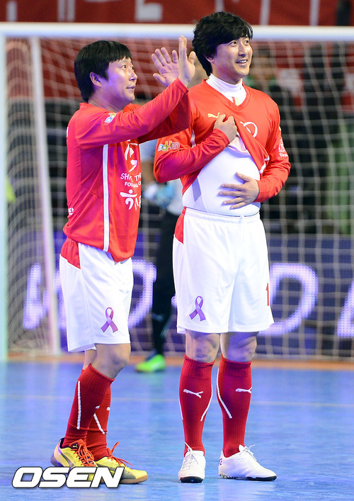 16일 오후 서울 잠실실내체육관에서 열린 '하나은행과 함께하는 Share the Dream Football Match 2012' 경기,후반 사랑팀 안정환이 골을 넣고 세레모니를 하고 있다