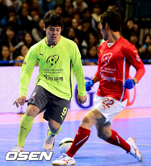 2012 런던 올림픽에서 동메달의 쾌거를 일군 홍명보 전 감독과 올림픽 대표팀 선수단으로 이뤄진 사랑팀과 최용수 서울 감독과 김병지(경남) 하대성(서울) 김남일(인천) 등 K리그 올스타로 구성된 희망팀으로 대결을 펼쳤다. 20분씩 2쿼터로 진행된 경기서는 안정환(K리그 명예 홍보팀장)이 결승골을 뽑아낸 사랑팀이 8-7로 승리했다.
