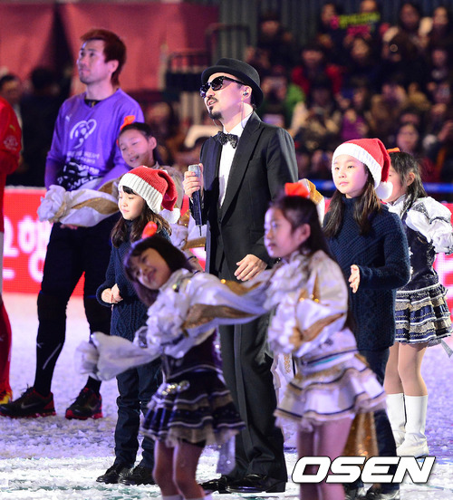 16일 오후 서울 잠실실내체육관에서 열린 '하나은행과 함께하는 Share the Dream Football Match 2012' 경기, 가수 박상민이 축하공연을 펼치고 있다.