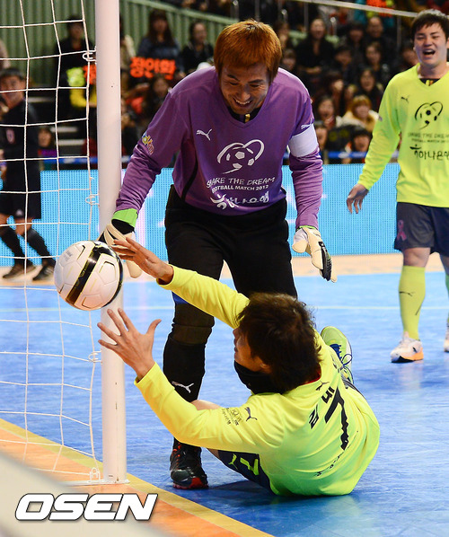 16일 오후 서울 잠실실내체육관에서 열린 '하나은행과 함께하는 Share the Dream Football Match 2012' 경기, 김태영 골 찬스를 놓치고 있다