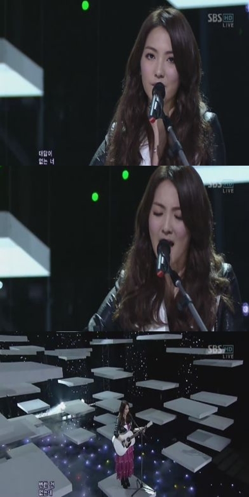 특히 커다란 기타를 메고 스탠딩 마이크 앞에서 농염한 눈빛을 뽐내며 그동안 선보였던 소녀스러운 모습을 버리고 한 층 어른스러운 매력을 뽐냈다.