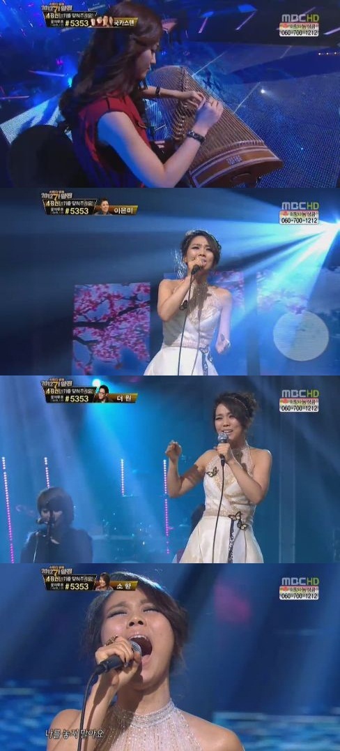 가야금과 해금과 함께 국악적으로 편곡해 풍부한 무대를 선보였다. 소향은 마치 악기를 연주하듯 노래를 부르며 폭발적인 가창력을 선보여 눈길을 끌었다.
