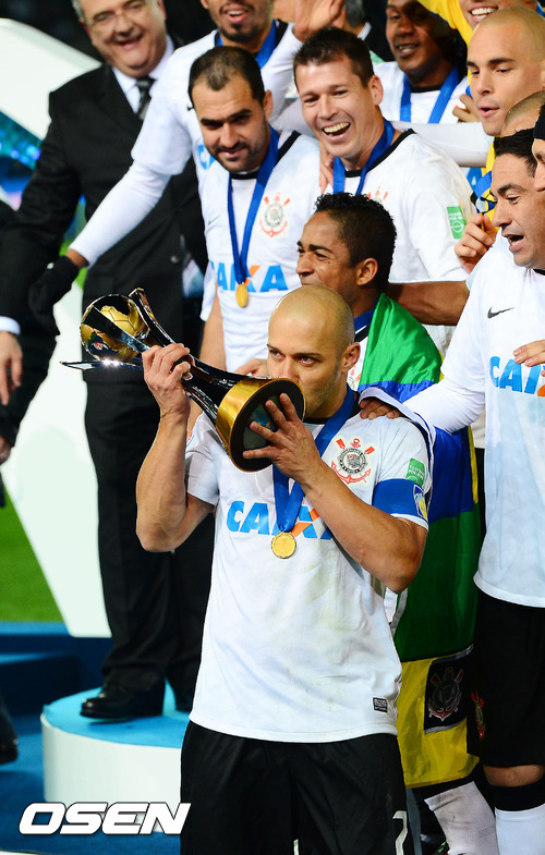 경기를 마치고 코린티안스의 주장 알레산드로가 우승트로피에 키스를 하고 있다. / rumi@osen.co.kr