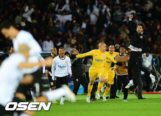 경기를 마치고 코린티안스 선수들이 그라운드로 뛰어나오며 우승의 기쁨을 나누고 있다. / rumi@osen.co.kr