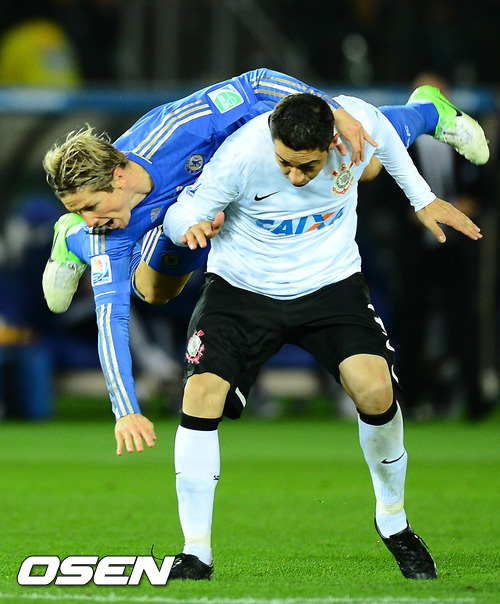 후반 첼시 토레스가 공중에서 볼을 헤딩한 후 코린티안스 치캉에게 떨어지고 있다. / rumi@osen.co.kr