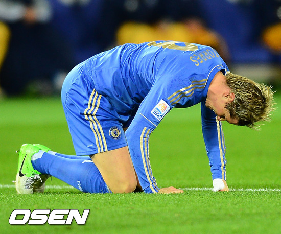 후반 첼시 토레스가 공중에서 볼을 헤딩한 후 균형을 잃고 떨어져 고통스러워 하고 있다.. / rumi@osen.co.kr