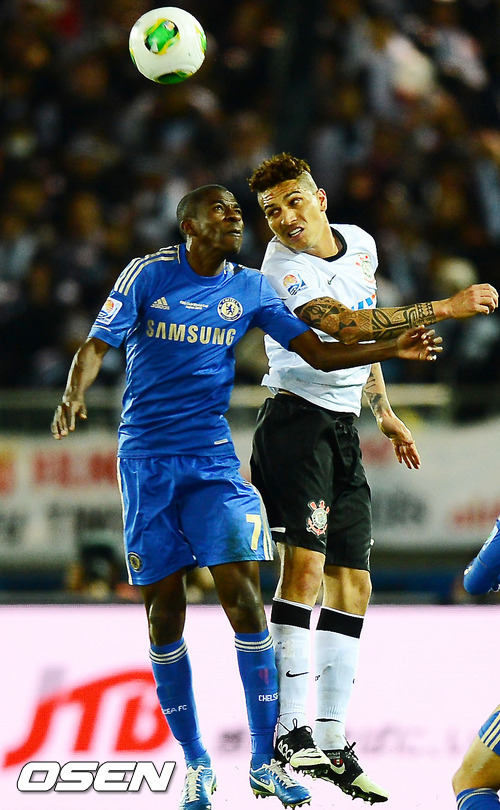 후반 첼시 하미레스와 코린티안스 파올로 게레로가 공중볼 다툼을 하고 있다. / rumi@osen.co.kr