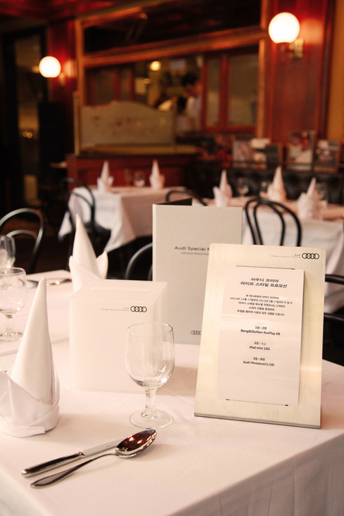 아우디 코리아가 17일부터 2013년 2월 17일까지 두 달 간 서울 시내의 4개 레스토랑에서 '아우디 라이프스타일 프로모션'을 펼친다.