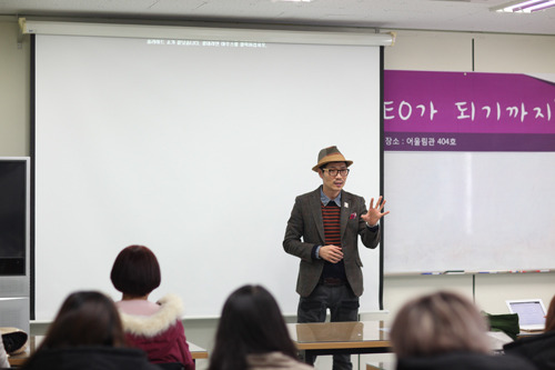 온라인 쇼핑몰 윙스몰 배상덕 대표가 6일 청강문화산업대학교에서 ‘온라인 패션몰 CEO가 되기까지’라는 주제로 강의를 진행했다.