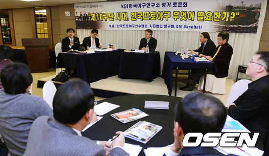 KBI 야구연구소는 17일 서울 마포구 서교호텔에서 '제 10구단시대, 한국프로야구 무엇이 필요한가?'라는 주제로 긴급토론을 주최했다. 최동호 스포츠평론가가 사회를 맡은 가운데 패널로는 김봉연 극동대 교수, 이용철 KBS 해설위원, 신호창 서강대 교수, 박동희 스포츠춘추 기자가 함께했다. 또한 수원시와 전라북도 공무원, 관계자들도 토론에 참가, 열띤 공방을 벌였다.