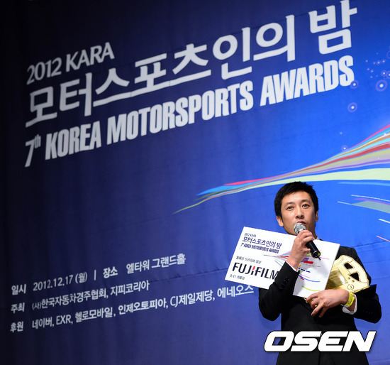 김의수는 17일 양재동 엘타워에서 열린 '2012 KARA 모터스포츠인의 밤, 제7회 한국모터스포츠 어워즈'에서 올 최고 카레이서에 등극했다.