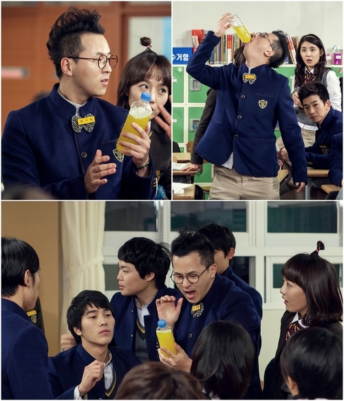 오늘(18일) 방송될 ‘학교 2013’ 6회 방송에서는 승리고 중간고사 풍경이 그려지는 가운데 2학년 2반의 촉과 오지랖을 맡고 있는 ‘인맥의 왕자’ 변기덕(김영춘 분)이 벼락치기 열공 투혼을 발휘하기 위해 ‘붕붕주스’를 제조하여 마시는 모습이 그려진다.