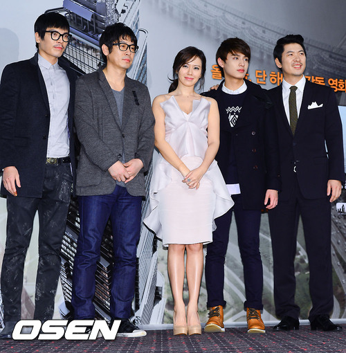 18일 오후 서울 왕십리CGV에서 열린 영화 '타워' 언론시사회에서 출연배우들이 포즈를 취하고 있다.