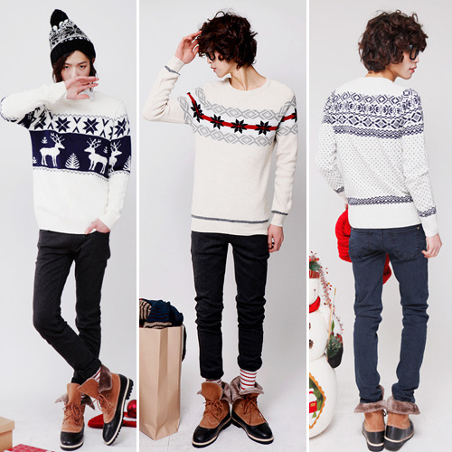 흰색 옷을 입는 반면, 트렌디하고 캐주얼한 분위기를 낼 수 있는 아이템은 무엇이 좋을까. 노르딕 패턴의 화이트 니트가 답이다. 니트가 가진 캐주얼한 분위기 때문에 평소 입기에도 부담스럽지 않을 뿐더러 사슴, 눈꽃 등의 북유럽 이미지를 말하는 노르딕 패턴이 크리스마스의 분위기를 한층 돋우기 때문에 솔로대첩에 솔로탈출을 꿈꾸는 남자들이 꼭 챙겨야 할 아이템이다.