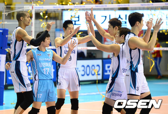 경기 종료 후 삼성화재 선수들이 승리의 기쁨을 나누고 있다./sunday@osen.co.kr