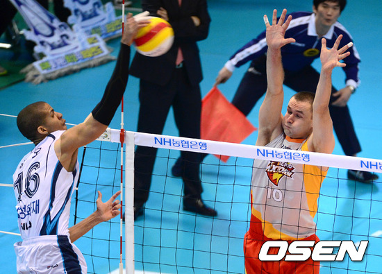 2세트 KEPCO 안젤코가 삼성화재 레오의 공격을 막고 있다./sunday@osen.co.kr