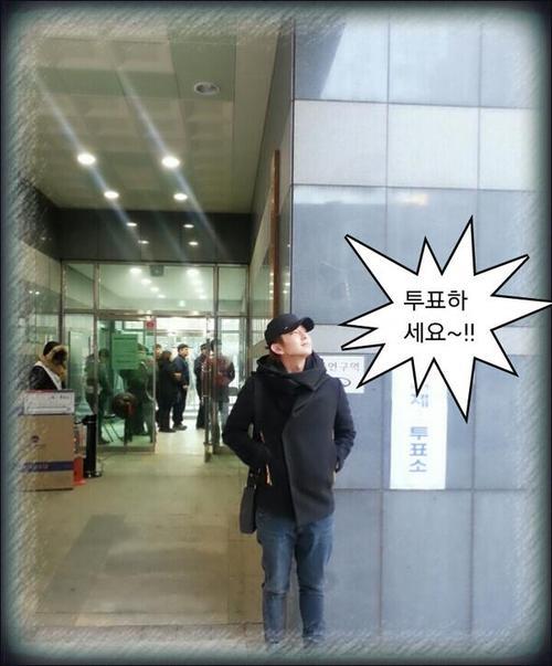 이준기는 19일 자신의 트위터에 "인증샷 올리라셔서 저를 감시하시는 겁니까! 아침 6시 35분 기상! 아버지께 가서 8시께 투표 완료^^ 대한민국의 주인이신 여러분 어서어서 역사를 새로 쓰러 가세요. 날씨 춥습니다. 따뜻하게 입으시고요!"라는 글과 함께 사진 한 장을 게재했다.