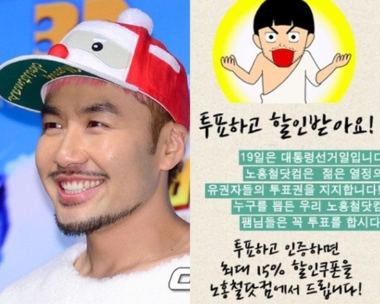 노홍철이 운영하고 있는 온라인 쇼핑몰 ‘노홍철닷컴’은 젊은 유권자들을 위해 이벤트를 마련했다.